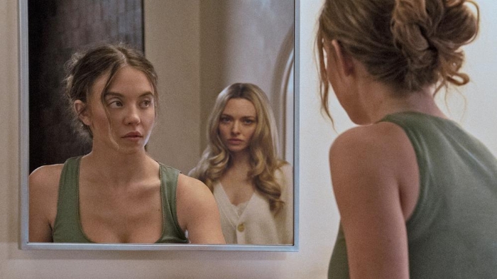 Das liegt in erster Linie an Amanda Seyfried („A Million Ways To Die In The West„, „Ted 2„), die hier alle Register zieht und als Nina einfach alles gibt – die Frau ist hier eine Tour de Force und möglicherweise gar nicht so wahnsinnig, wie man am Anfang denkt. Ich war völlig baff, denn ich kannte sie in erster Linie aus „Mamma Mia! Here We Go Again“ und da war sie auch gut, aber das hier – das ist richtig stark. Dazu kommt Brendan Sklenar, der als Andrew die absolute Ruhe ausstrahlt und mit seiner Samtstimme manche Szene deutlich deeskaliert – auch hier: wunderbare gecastet. Dass der gute Herr ganz oft in Unterhemden rumläuft und sogar seinen nackten Po zeigen darf, wir die weibliche Zuseherschaft sicher freuen und teilt das Eye-Candy (fast) 50:50 auf. Die andere Hälfte ist Sydney Sweeney („Madame Web„, „Immaculate„), die ja scheinbar wunderschön ist und ja, auch hier darf man sie kurz nackt betrachten und an ihrem Körperbau erfreuen (wenn dass jemand wollen sollte). Insofern spannend, als sie und Amanda Seyfried auch als Produzent:innen fungieren, das hier also schon sehr bewusst eingesetzt ist.